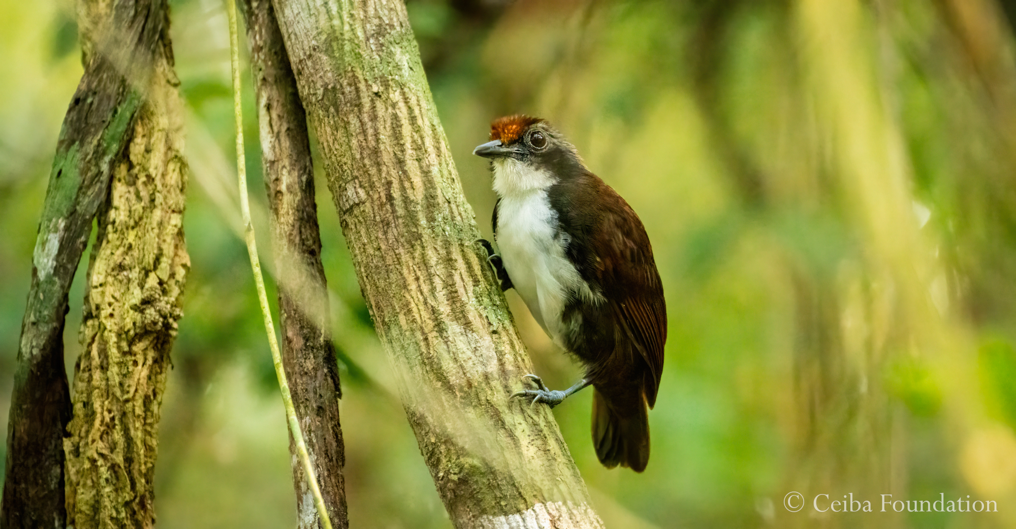 While walking alone I stumbled on to a swarm of army ants (Eciton burchellii) hunting across the forest floor, and while following the raid I spotted an old friend! During my dissertation research in Costa Rica, I spent a lot of time observing birds hunting with ant swarms -- to assess whether small forest fragments can be good homes for both (they can!) -- and one of the most common regulars were Bicolored Antbirds. So it was a joy to see one here in Ecuador, again following the ants.
