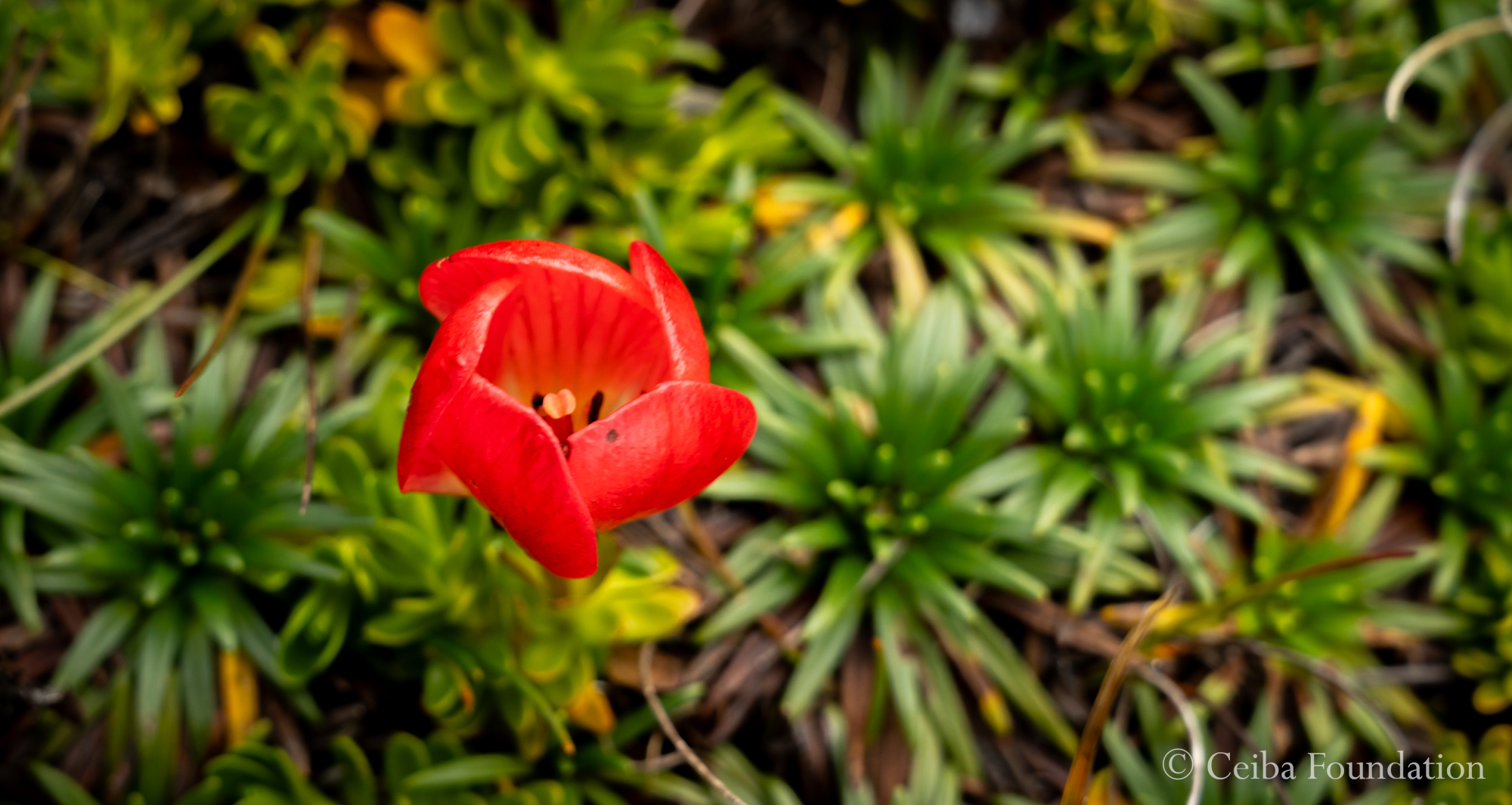 Flowers abound in the paramo, sometimes tiny whorls of color like this Gentian (probably Gentianella hirculus)